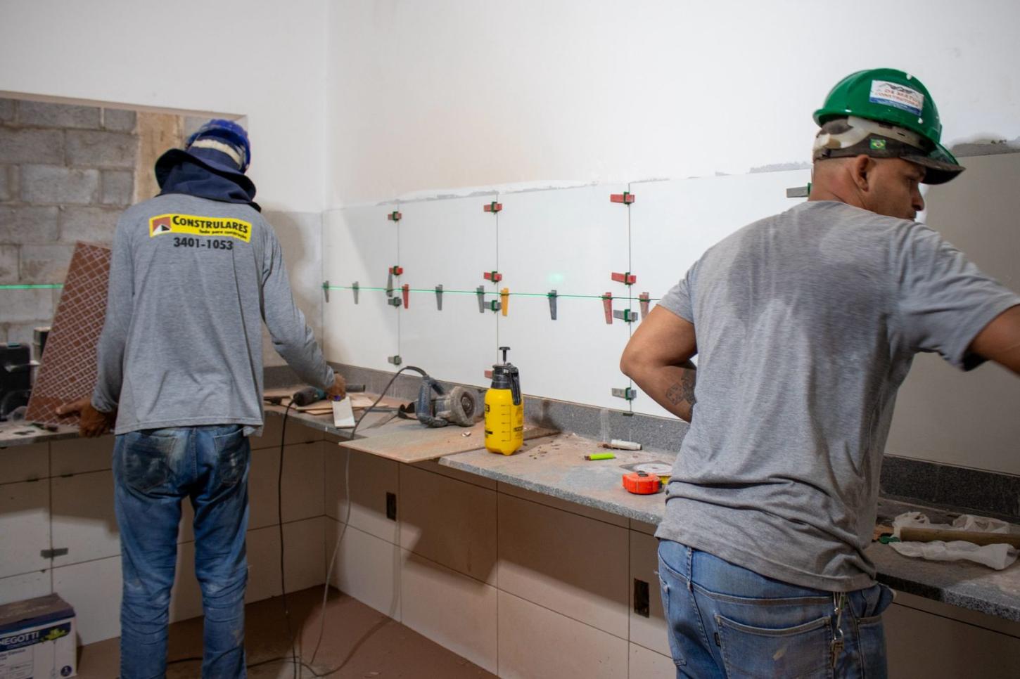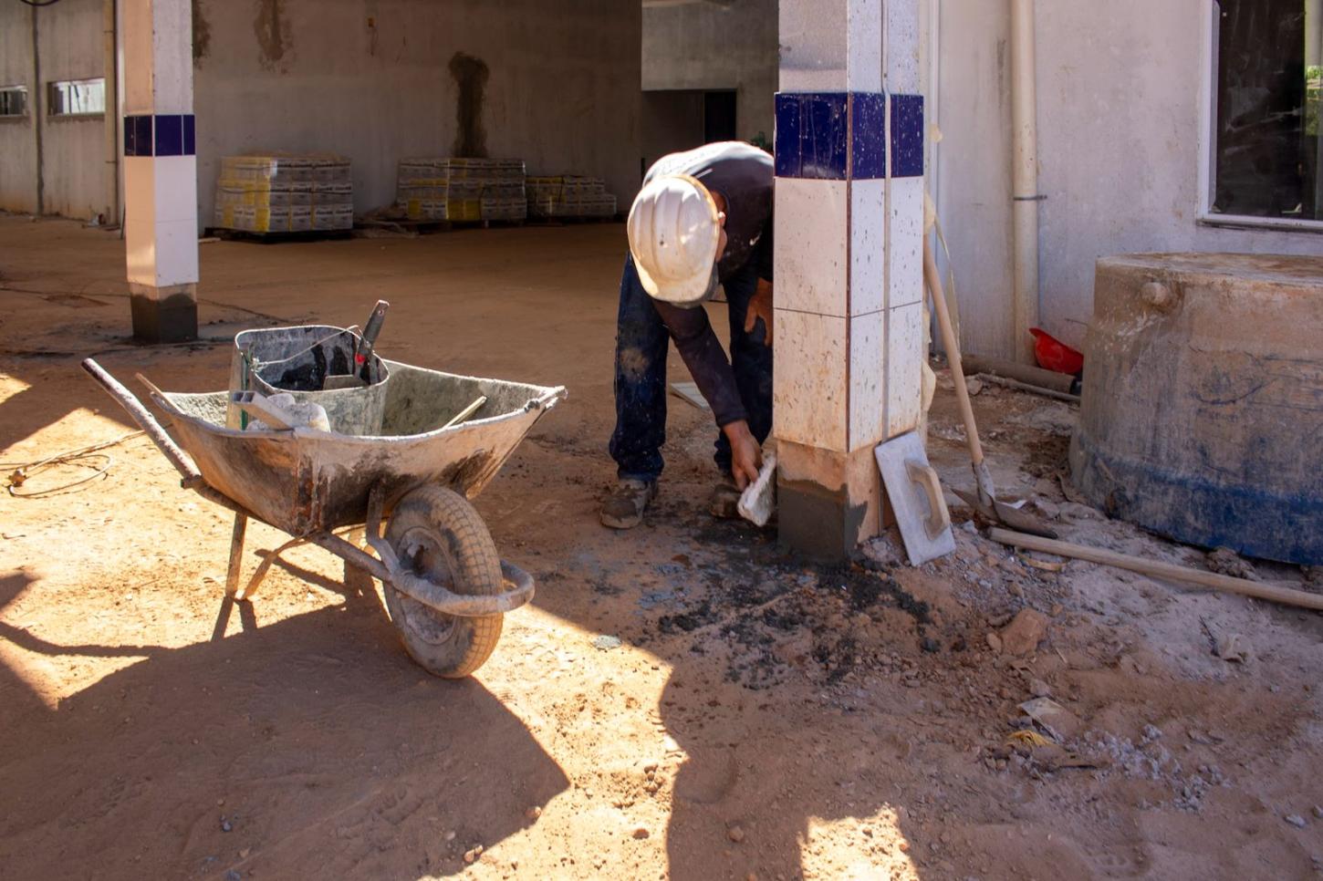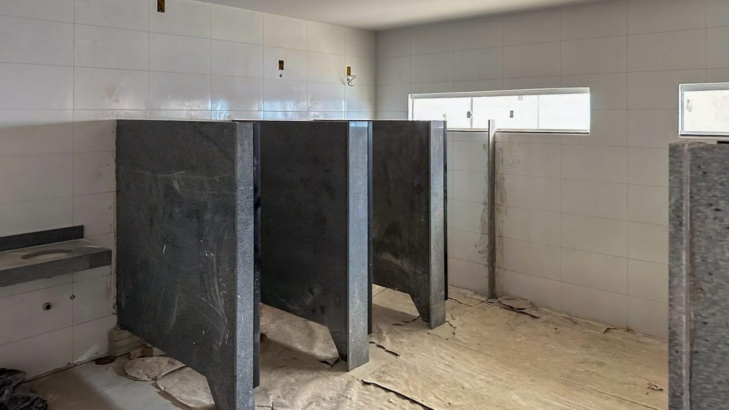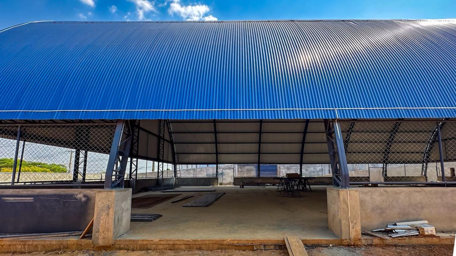 Nas últimas semanas, foram concluídas a instalação dos pisos nas salas de aula e iniciada a construção dos vestiários, que já estão com a estrutura pronta. A parte elétrica está em fase final de instalação, ao mesmo tempo em que outras estruturas, como a cobertura das salas, quadra e refeitório, já estão prontas. O muro está completamente erguido e se encontra em fase final de acabamento. Além disso, a implantação de pisos táteis, que garantem acessibilidade aos estudantes PCD 's, também está em fase final de instalação.